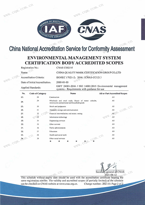 環境管理體系認證機構認可證書