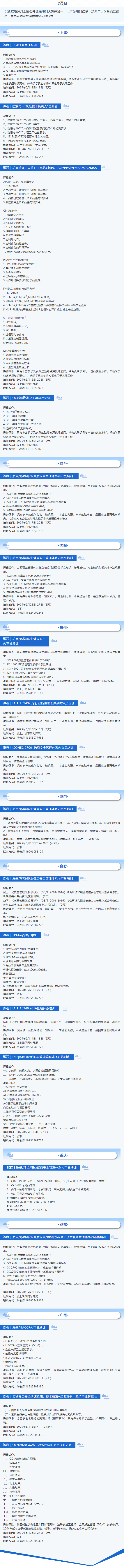 CQM方圓2025年6月全國公開課程培訓計劃