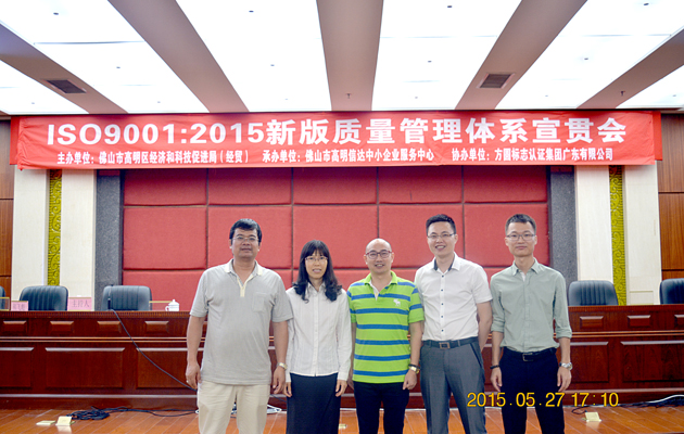 方圓廣東公司協辦佛山市高明區ISO9001:2015質量管理體系 標準研討會