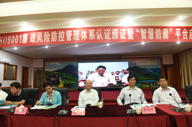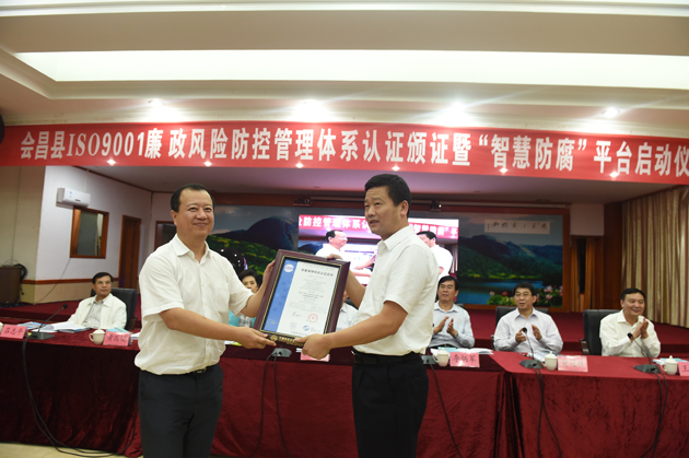 10月23日下午,江西省會昌縣舉行“基于質(zhì)量管理體系標準的廉政風險防控管理體系”認證頒證暨“智慧防腐”平臺啟動儀式。在國家質(zhì)檢總局局長支樹平,江西省委常委、贛州市委書記李炳軍,江西省副省長謝茹等領(lǐng)導(dǎo)的見證下,方圓集團董事長高建忠向會昌縣委、縣政府頒發(fā)了全國首張廉政風險防控管理體系認證證書。