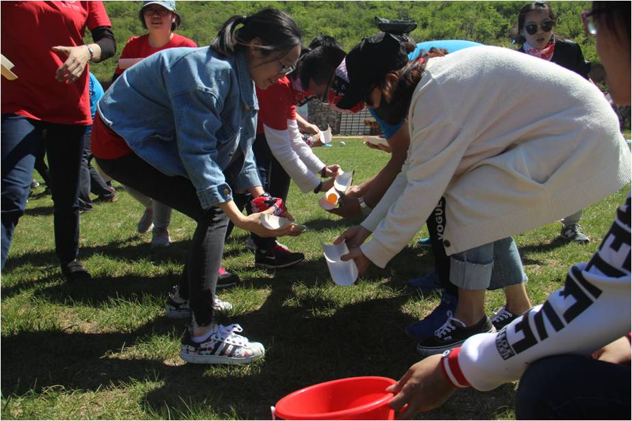 抵達黃花城水長城培訓場所后,大家在培訓教練的帶領下被分成九個小組,經過各小組的一番頭腦風暴,九個個性鮮明的團隊名稱、響亮的團隊口號、嘹亮的隊歌以及富有特色的隊旗逐一精彩亮相,“小西湖場地趣味定向尋寶—湖底的秘密”拓展培訓活動的序幕也正式拉開。各隊手持“通關寶典”,比拼體力腦力,共同配合,拯救了“被詛咒的水怪”,攻克了“行走的板栗王”,挑戰(zhàn)了“語言魔王”……活動過程中所有團隊成員積極參與,迎難而上,隊員之間相互支持,相互鼓勵,最終,所有團隊均圓滿通關,完成了最終任務——方圓夢想拼圖。