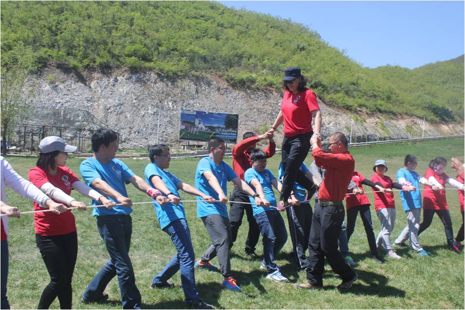 第二天,九個小組的成員們分別參與了“盜夢空間”、“挑戰(zhàn)NO.1”等經典素質拓展培訓項目,每個項目結束后大家共同分享了成功的經驗和挑戰(zhàn)的樂趣,充分地體會到了團隊信任、有效溝通、換位思考和團隊協(xié)作等和工作息息相關的管理意識。最后的百人挑戰(zhàn)“團隊能量”項目更是激發(fā)了大家的斗志,在同心協(xié)力完成了不可能完成的挑戰(zhàn)后,每個人的臉上都洋溢著自信的笑容,互相支撐、相互信賴的方圓人是最棒的!