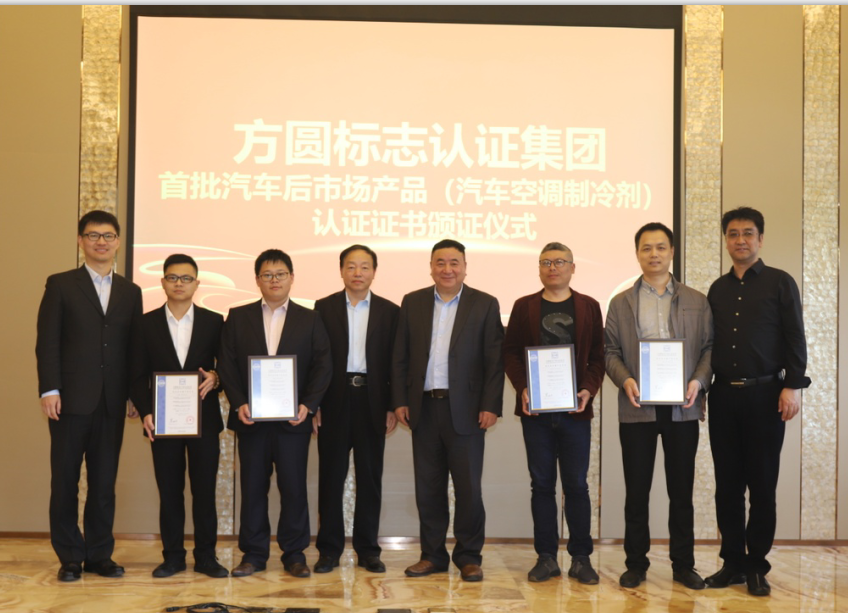 方圓集團頒發首批汽車后市場產品(汽車空調用制冷劑(氣霧罐型))認證證書