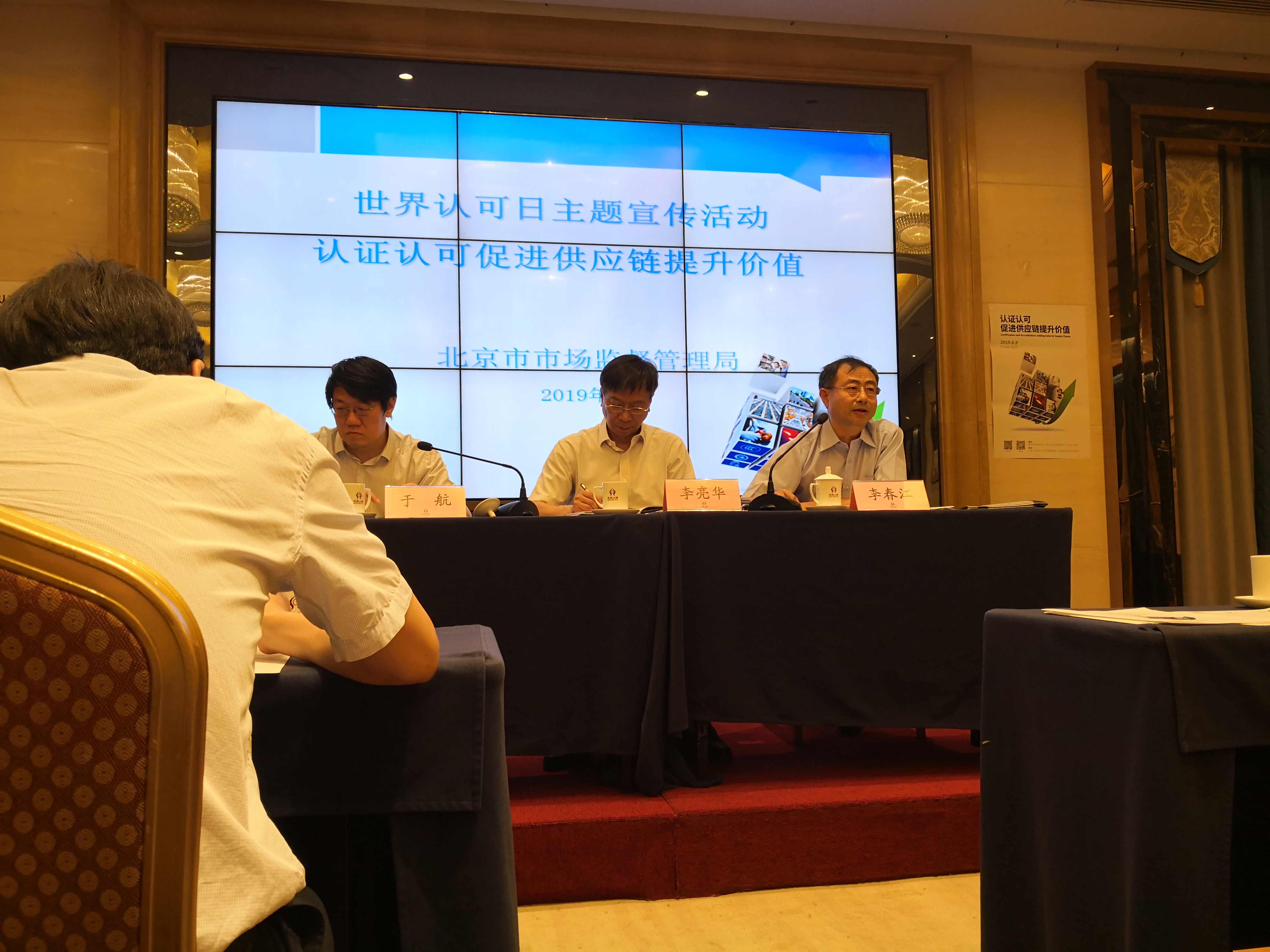 時間:2019年06月24日 2019年6月9日是第12個世界認可日,是世界各國宣傳和推動認證認可檢驗檢測工作的重要契機。為了貫徹落實黨中央、國務院關于推進質量認證體系建設的決策部署,進一步發揮認證認可的作用,加強市場監管,促進質量提升,推動經濟社會又好又快發展,北京市市場監督管理局于6月21日在北京西藏大廈召開“世界認證認可日”宣傳活動大會。國家市場監督管理總局認證監管司副司長李春江、北京市市場監管局副局長李亮華出席會議并講話,方圓集團公司等認證機構代表、檢測機構代表及企業代表應邀參加會議。
