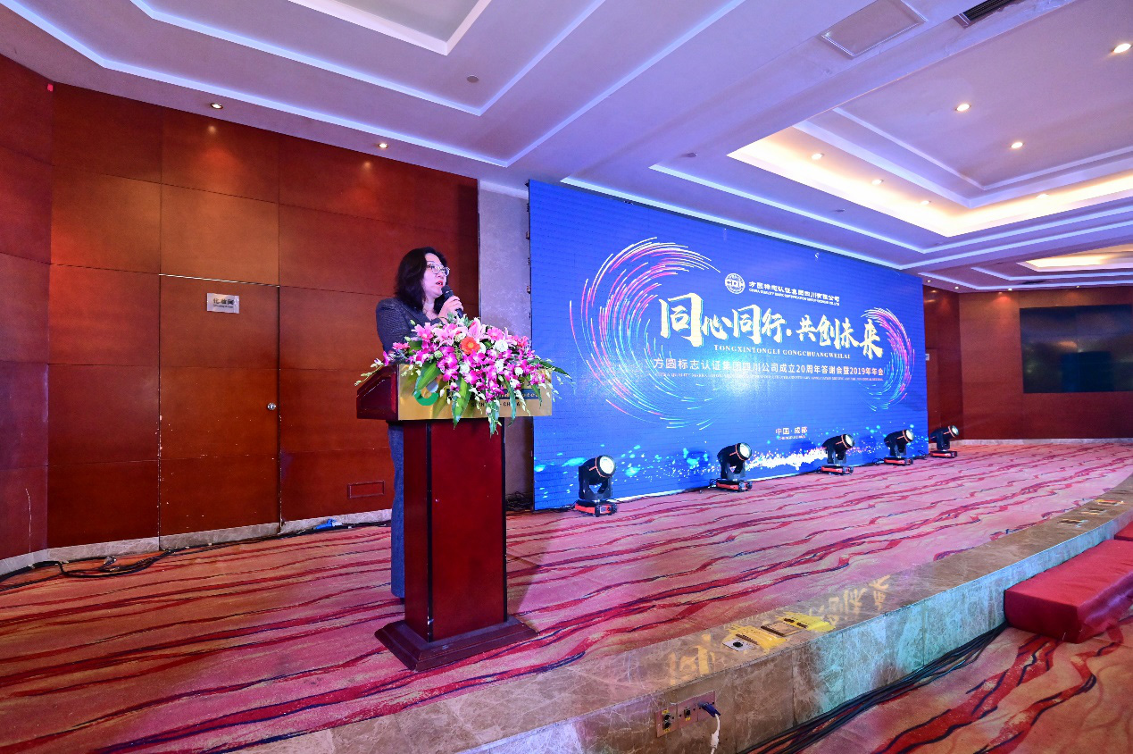 方圓集團公司董事長/總經(jīng)理冀曉東代表集團對出席的各位領導、來賓表示熱烈歡迎,對方圓四川公司成立20周年表示衷心祝賀。她回顧了方圓集團這20多年來不斷開拓創(chuàng)新、樹立行業(yè)領軍地位的發(fā)展歷程,肯定了四川公司過去20年積極參與四川各行各業(yè)質(zhì)量工作、服務四川省高質(zhì)量發(fā)展作出的優(yōu)異成績,寄語四川公司繼續(xù)發(fā)揚“專注、專業(yè)、專心”的行業(yè)文化,為四川省各級政府部門、企業(yè)客戶提供更優(yōu)質(zhì)的質(zhì)量認證和技術(shù)服務,助力四川標準、四川品牌、四川質(zhì)量全面提升,為建設品質(zhì)四川作出更大的貢獻。