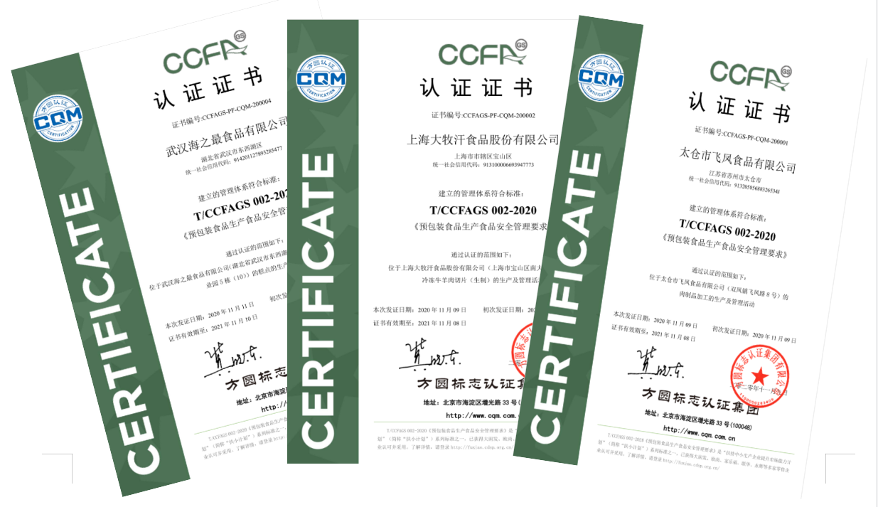 除了預包裝標準(《CCFAGS-預包裝食品生產食品安全管理要求》)已實現培訓和驗廠、認證工作;還有各類初級農產品標準(《CCFAGS-初級農產品食品安全管理要求(種植類)》、《CCFAGS-初級農產品食品安全管理要求(水產類)》、《CCFAGS-初級農產品食品安全管理要求(畜禽類)》)也在緊鑼密鼓地進行標準校準中,實現初級農產品的扶小計劃工作指日可待!
