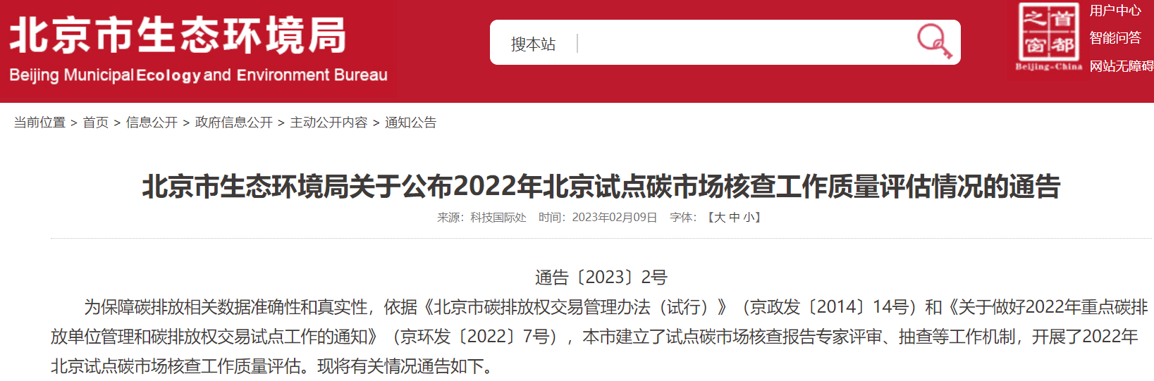 時間:2023年02月16日 近日,北京市生態環境局公布了2022年北京試點碳市場核查工作質量評估結果,方圓標志認證集團作為第三方核查機構,在此次評估中“優”等級報告比例100%,并且連續四年獲評“優”級。
