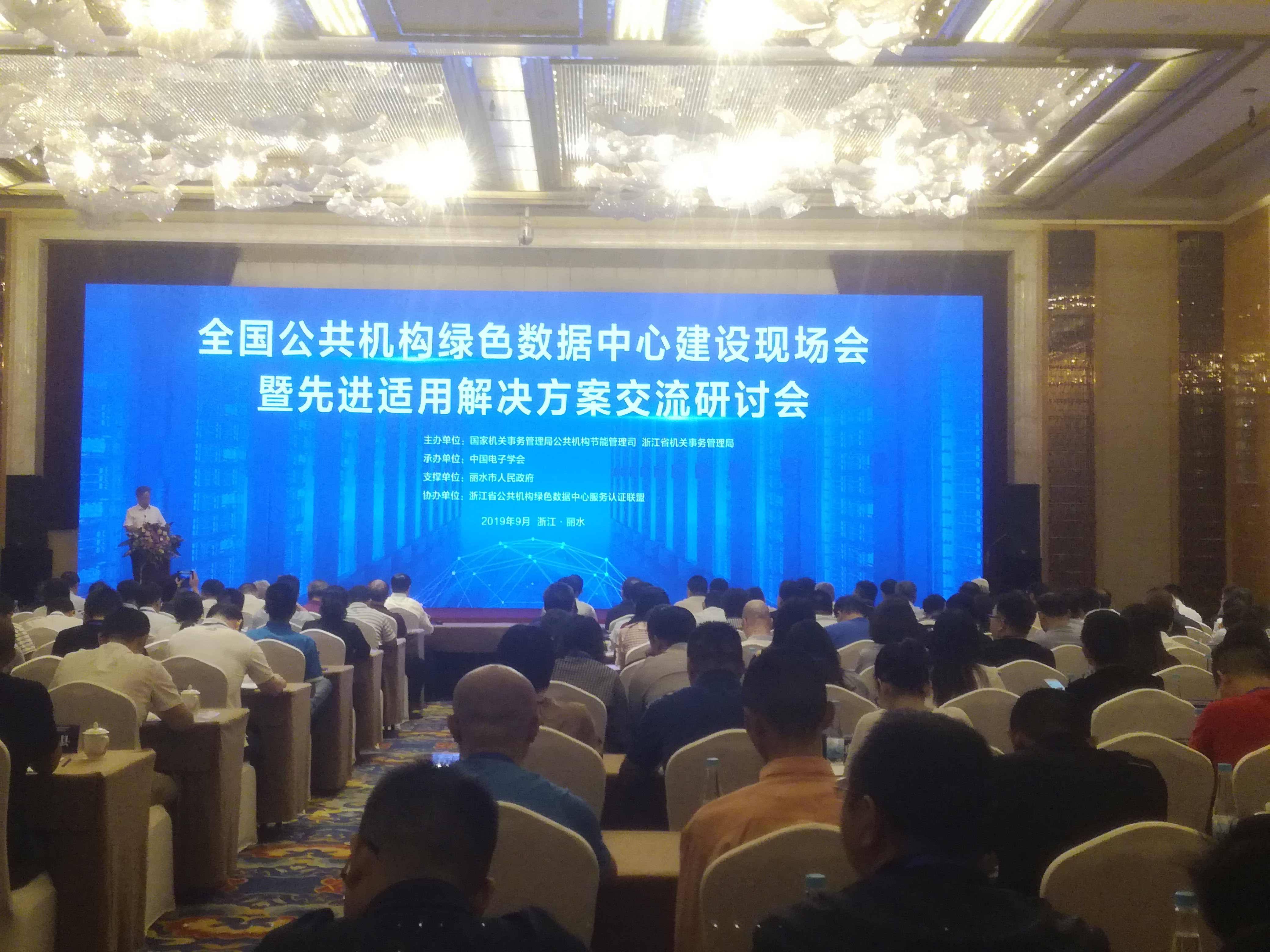 時間:2019年09月29日 9月25日,全國公共機構綠色數據中心建設現場會暨先進適用解決方案交流研討會在浙江省麗水市召開。會議由國家機關事務管理局公共機構節能管理司洪波副司長主持,國家機關事務管理局公共機構節能管理司、國家市場監督管理總局認證監督管理司、工業和信息化部節能與綜合利用司、全國各省市公共機構節能管理部門負責人、中國電子學會、浙江省公共機構綠色數據中心服務認證聯盟機構、綠色數據中心技術機構代表等300余人參加本次會議。方圓浙江公司作為公共機構綠色數據中心副理事單位受邀參加。