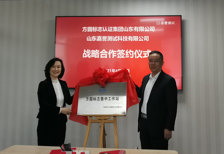 揭牌儀式前,方圓標(biāo)志認(rèn)證集團山東有限公司和山東嘉譽測試科技有限公司簽署了戰(zhàn)略合作協(xié)議,方圓山東公司副總經(jīng)理馬書哲、嘉譽測試科技集團副總經(jīng)理王強代表雙方簽署協(xié)議,雙方總經(jīng)理及部分工作人員見證了簽字儀式。
