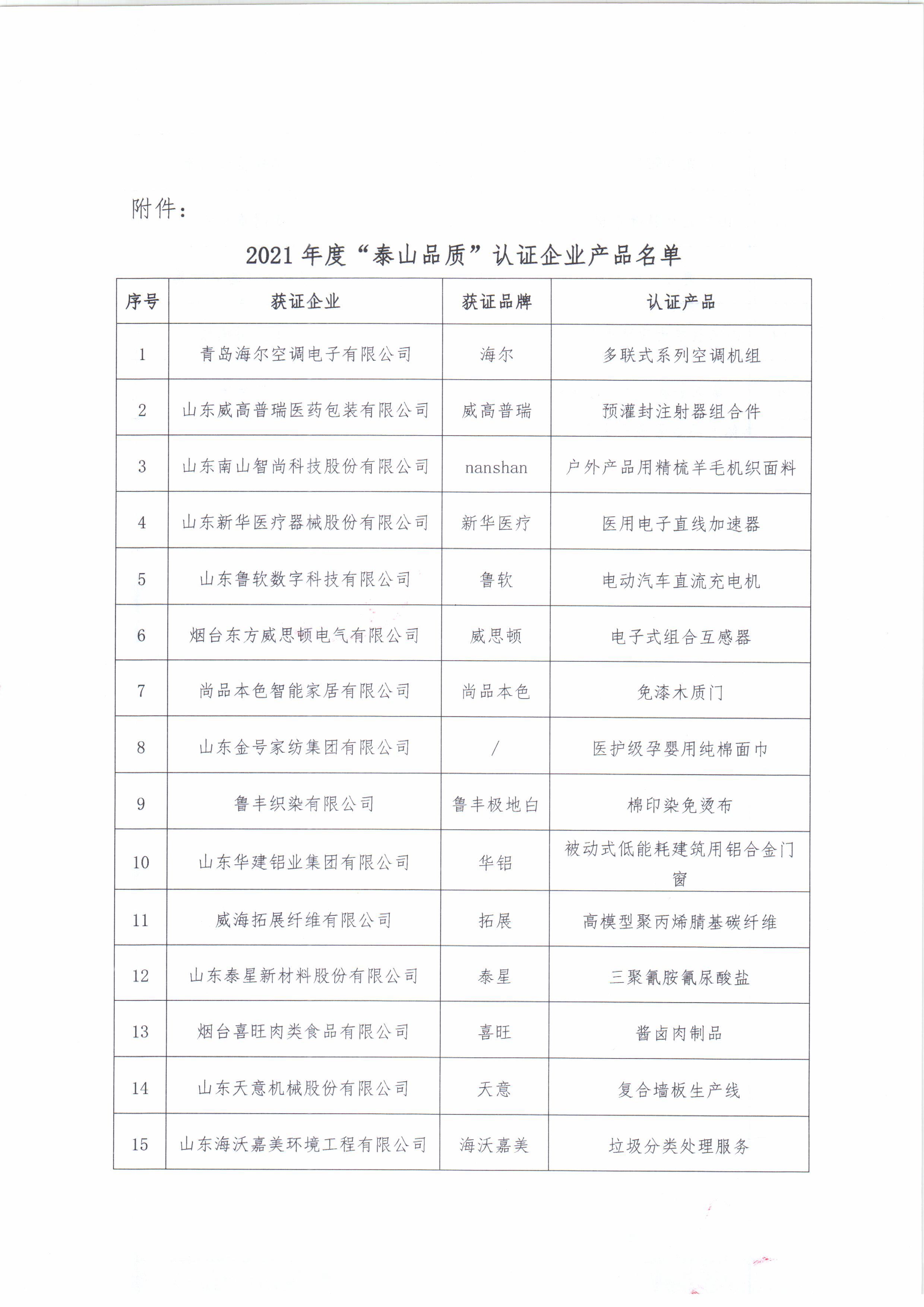熱烈祝賀山東華建鋁業集團有限公司等3家企業獲得2021年度“泰山品質”認證證書