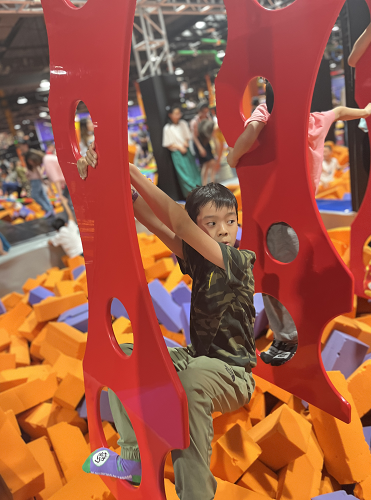 在蹦床公園,孩子們盡情玩耍,超大蹦床、空中飛人、滑索、旱雪滑梯、空中拓展、一站到底等多個項目讓每個小朋友都玩得不亦樂乎,流連忘返。職工們平時都忙于工作,也趁這次活動進行了體育鍛煉,在現場工作人員的耐心指導下,小朋友完成了滑索、攀巖等高難度的項目,與爸爸媽媽和小伙伴手挽手、肩并肩全身心的投入到每一個項目中,整個場面熱鬧非凡。結束的時候,大家伙都累得滿頭大汗,一個個頭發濕漉漉的,衣服也像是水洗過一樣,卻不舍得離開。
