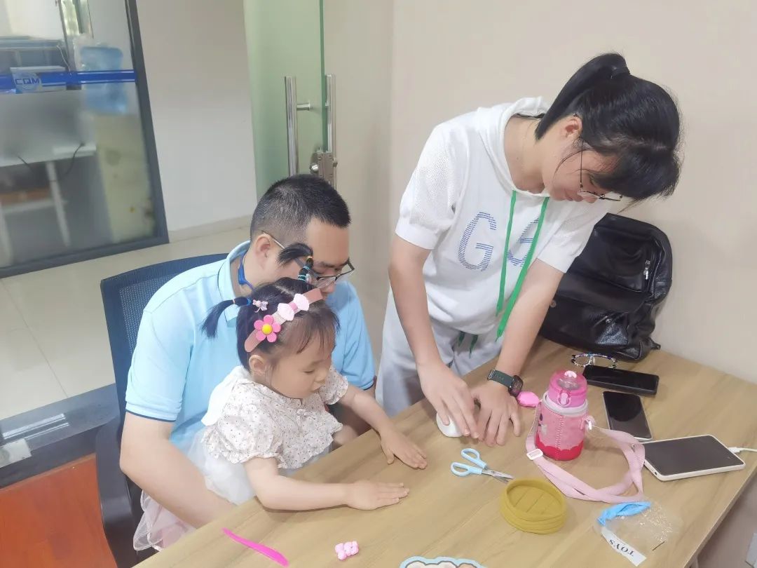 在手工制作過程中,小朋友們和家長非常投入,小朋友們在老師的指導下自己動手、利用手中色彩艷麗的黏土認真地思考和制作,運用自己靈巧的雙手制作出各種樣子的作品,有可愛的粽子、冰墩墩音樂盒,小齡兒童有爸爸媽媽在一旁協助,整個活動現場其樂融融。