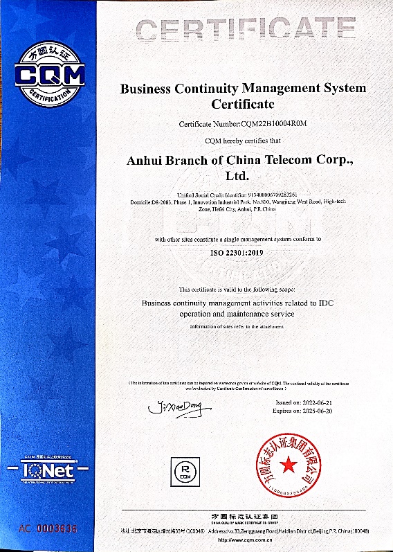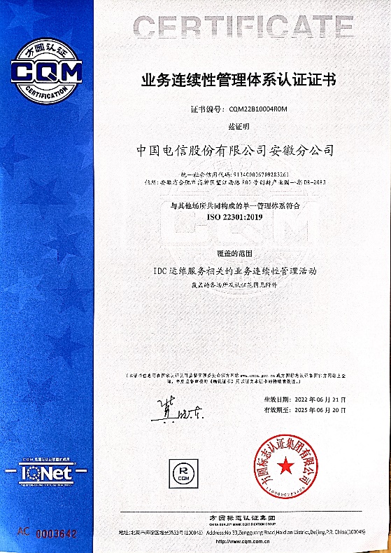 方圓安徽公司通過深耕安徽市場,利用“方圓”品牌優勢,不斷嘗試與本省知名企業進行合作,通過技術服務促進企業管理能力提升。中國電信安徽分公司作為公司長期優質客戶,已獲得方圓認證質量管理體系、信息安全管理體系、信息技術服務管理體系三項認證證書。此次獲取“業務連續性管理體系”認證證書,進一步提升了管理績效,增強了市場競爭力。