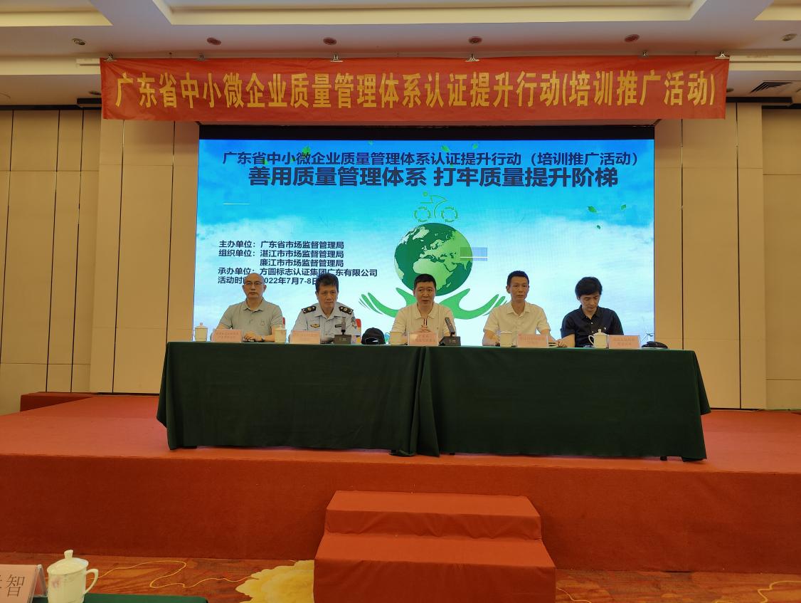 時間:2022年07月12日 根據《廣東省市場監督管理局關于開展 2022 年度中小微企業質量管理體系認證提升行動的通知》(粵市監認監〔2022〕89 號)以及2022 年度廣東省中小微企業質量管理體系認證提升行動(培訓推廣項目)系列培訓計劃2022 年 7 月 7 日至 8 日方圓廣東公司在湛江市舉辦了智能家電產業集群以及軟件與信息服務產業集群等廣東省戰略產業集群相關企業現場培訓。參會人員有湛江市及周邊市市場監管局有關科室領導、湛江市及周邊地市智能家電(家用電器)以及軟件與信息服務(人工智能)等相關行業相關企業負責人及質量管理人員。