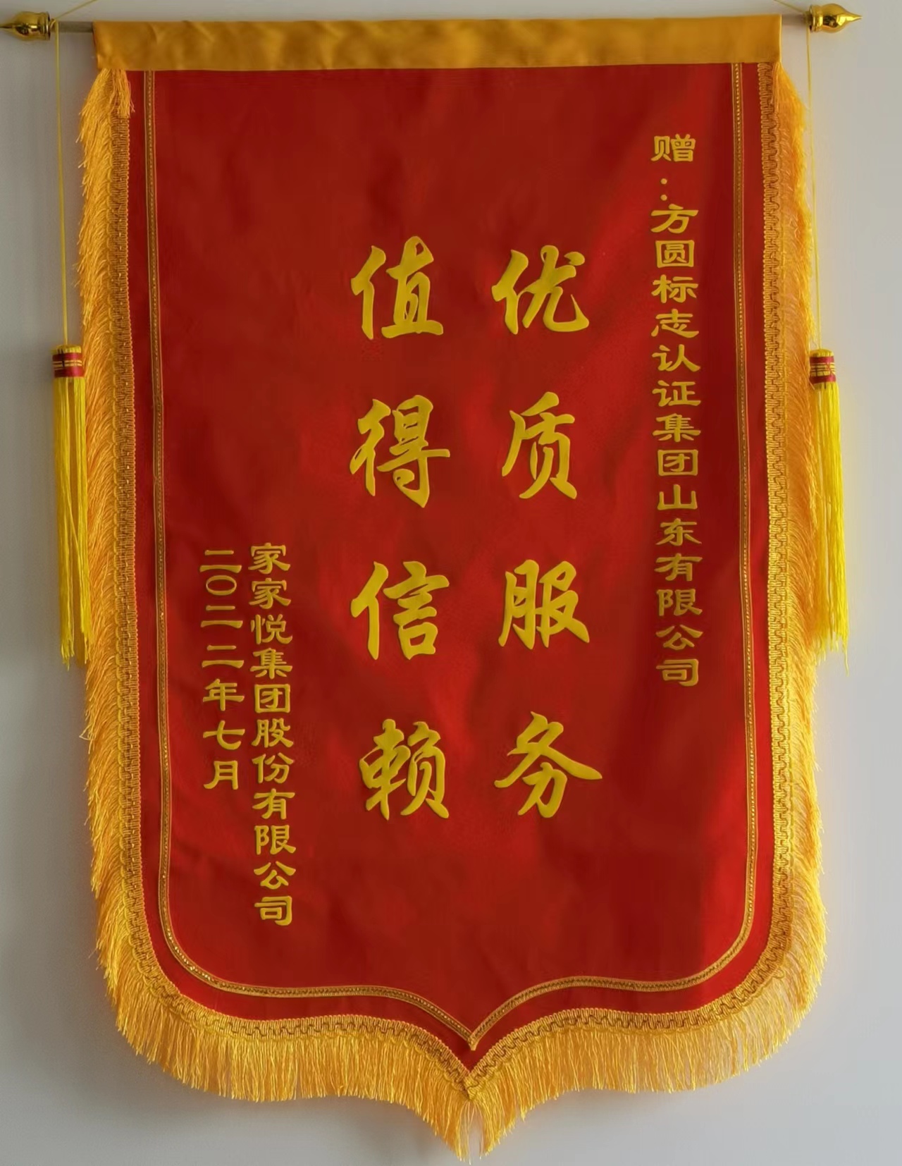 “優質服務暖人心、扎實工作得信賴”——家家悅 集團向方圓山東公司贈送錦旗