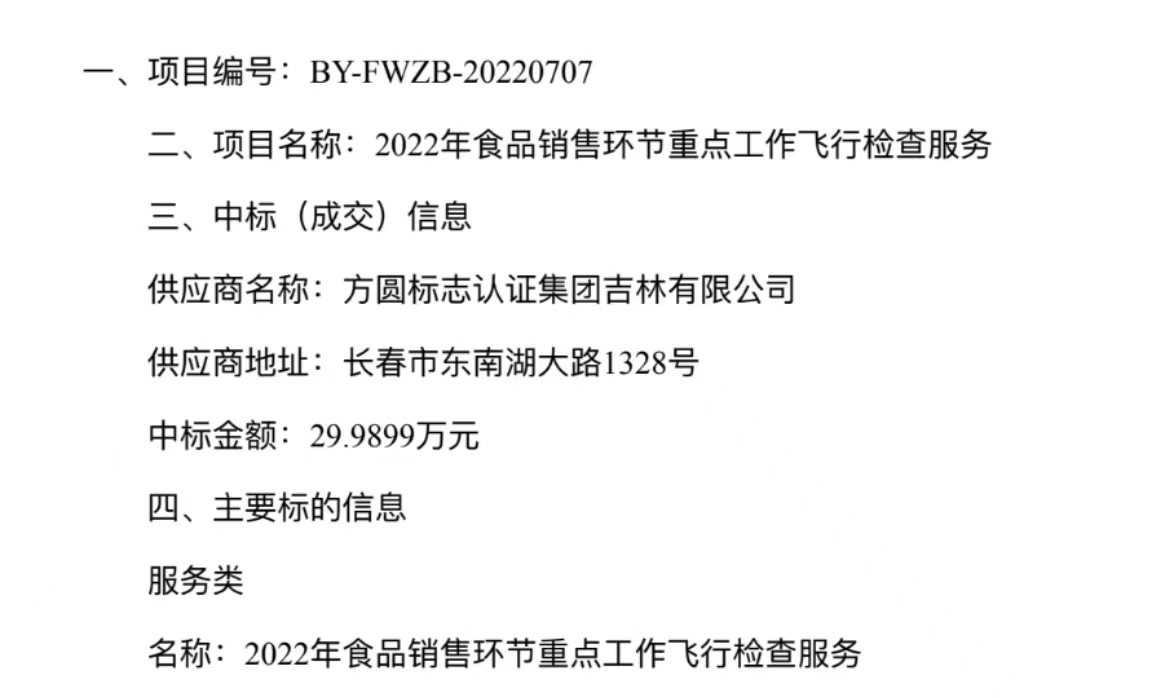 方圓吉林公司服務吉林省市場監督管理廳2022年食品檢查項目