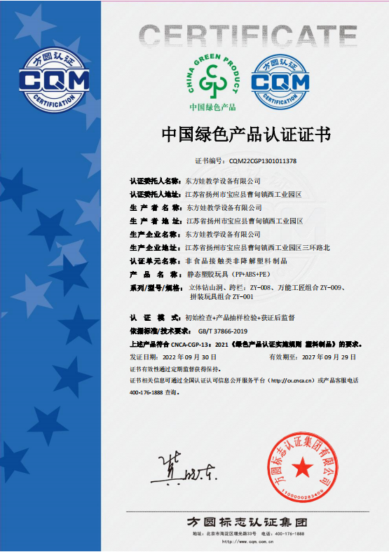 時間:2022年10月18日 近日,東方娃教學設(shè)備有限公司、江蘇寶樂實業(yè)有限公司在揚州市場監(jiān)管局的指導和寶應(yīng)市場監(jiān)管局的支持下,在方圓江蘇公司的幫扶提升下,順利通過中國綠色產(chǎn)品認證并獲得認證證書,這是方圓江蘇公司首次結(jié)合綠色產(chǎn)品認證開展小微企業(yè)質(zhì)量提升活動的特色創(chuàng)新幫扶。
