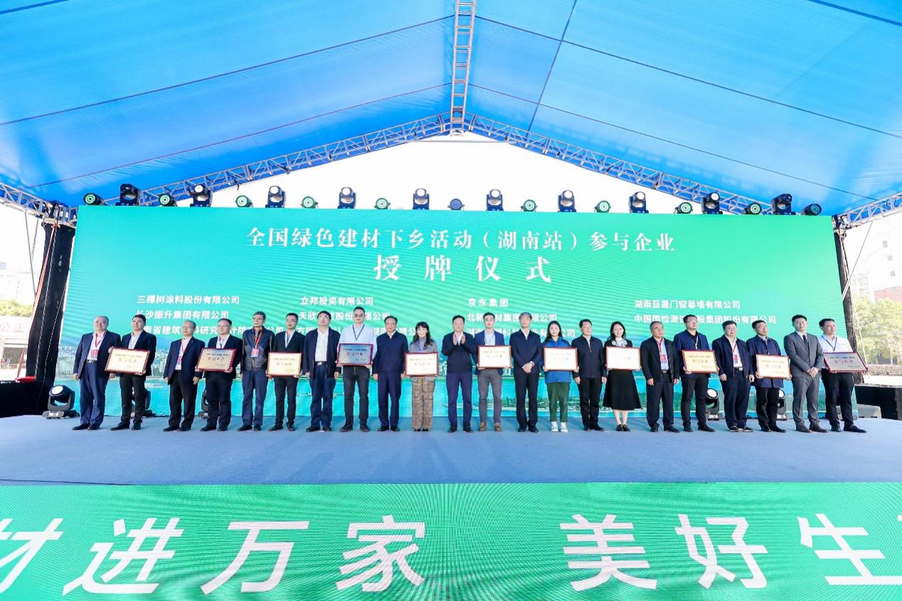 時間:2022年11月03日 為加快綠色建材生產、認證和推廣應用,促進綠色消費,助力美麗鄉村建設,大力推進湖南建材與裝配式建筑產業集群(產業鏈)發展,加強行業合作,11月1日上午由工業和信息化部、住房和城鄉建設部、農業農村部、商務部、國家市場監管總局、國家鄉村振興局六部委指導,湖南省工業和信息化廳、岳陽市人民政府主辦的主題為“綠色建材進萬家 美好生活共創建”的2022年全國綠色建材下鄉活動(湖南站)啟動及展銷會在湖南省岳陽市湘陰縣左宗棠廣場正式拉開帷幕。