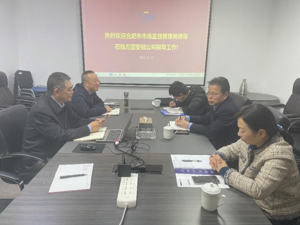 調研座談會上,汪學東總助代表劉險鋒總經理對市局領導來方圓安徽公司調研表示了歡迎。并向領導介紹了方圓集團及安徽公司的發展歷程、業務范圍及運行情況,在介紹過程中,三位領導表示了對方圓公司雙碳節能、綠色及防爆產品、農食業務、軌道交通等相關業務開展情況的關注和贊許;也同時表示,市局將盡快完善并推進檢驗檢測及認證認可相關政策、反饋的落實,為認證認可業務的健康有序發展提供支持。