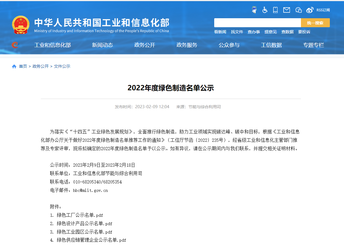 方圓山東公司客戶入圍2022年度國家級綠色工廠公示名單